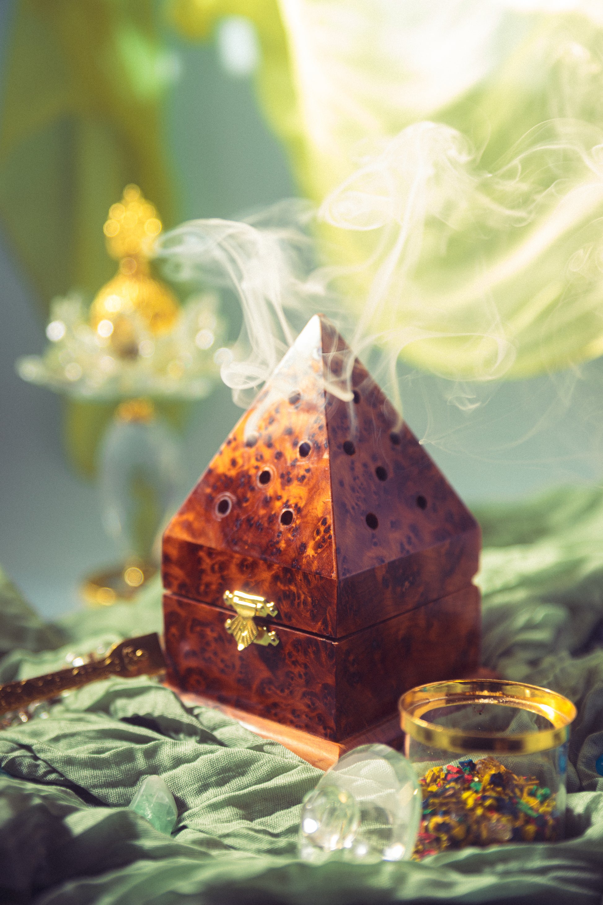 Laissez-vous emporter par l'authenticité et l'élégance de l'encensoir Layali en bois de thuya, une pièce unique et intemporelle.